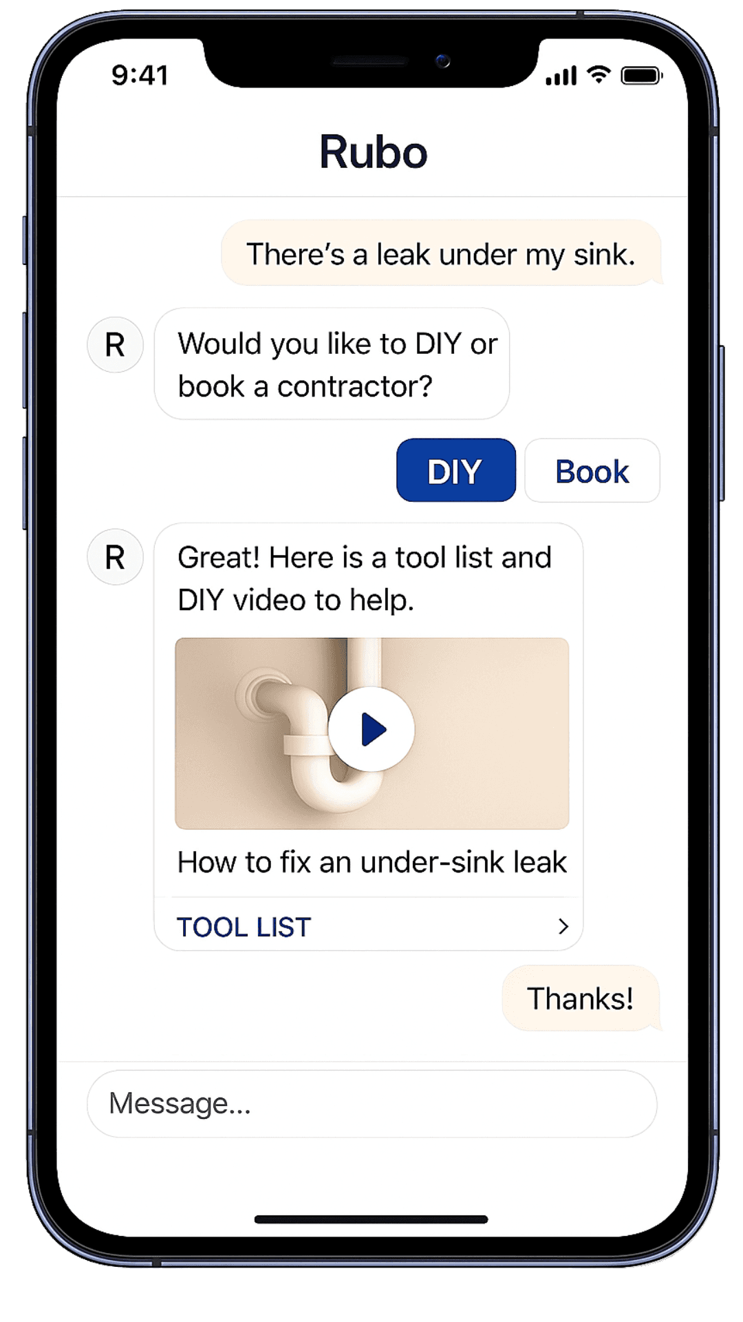 Quickly find and book vetted local experts when professional help is needed. RUBO helps with scheduling, communication, and ensures the appointment is added to your calendar.